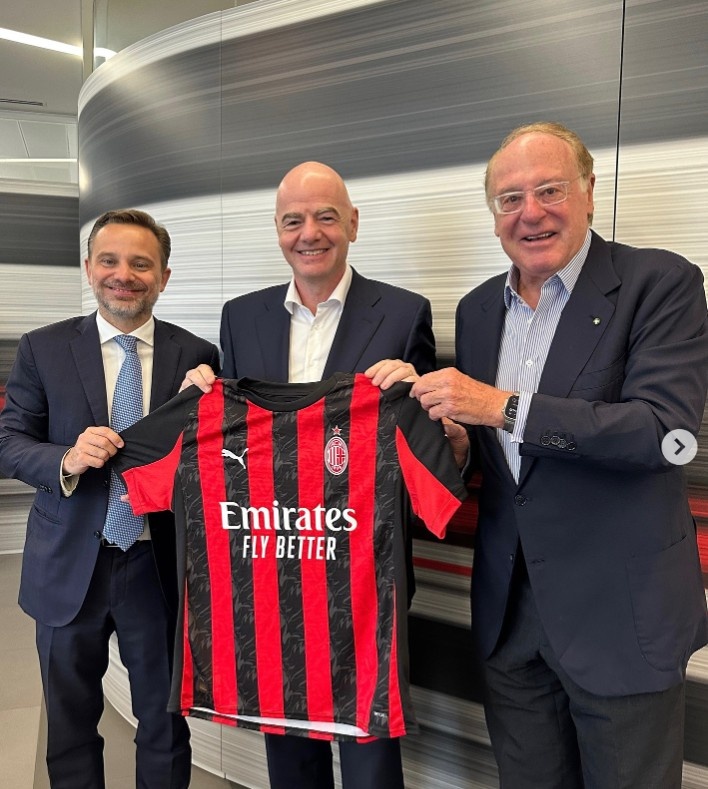因凡蒂诺在社交媒体上写道:“很高兴与AC米兰主席斯卡罗尼以及CEO富拉尼会面,一起探讨了足球、国际赛事以及基础设施等话题。”